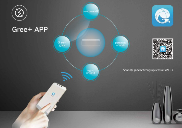 Acum puteti opri cu usurinta aparatul de aer conditionat Gree Fairy chiar daca nu sunteti acasa si il puteti porni inainte sa va intoarceti. Iar toate aceste lucruri, le faceti de pe smartphone sau tableta, indiferent de unde va aflati.Kit de instalare inclus