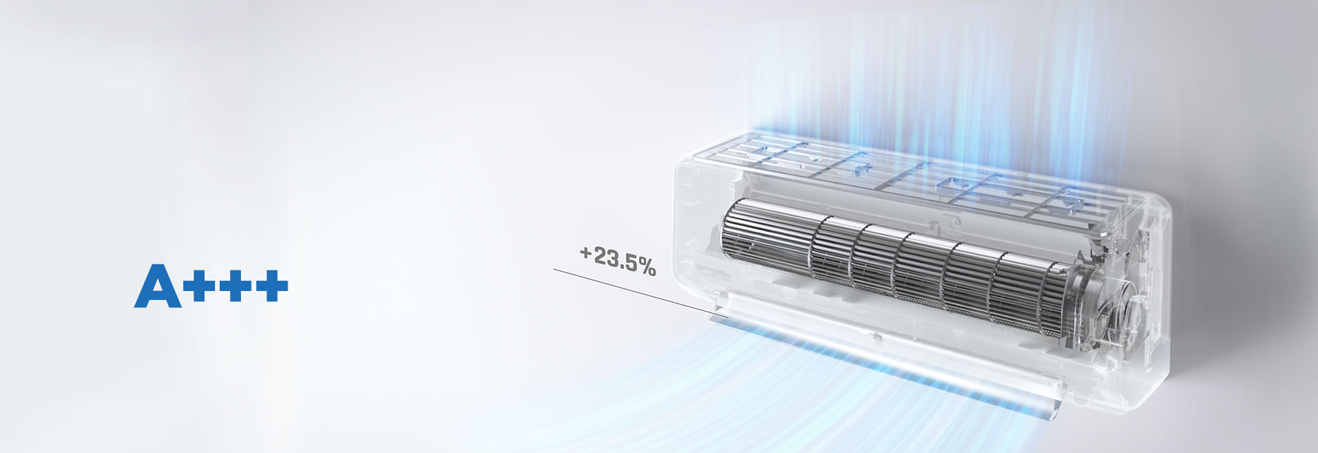 Racoreste rapid fiecare colt al camerei. Pozitionarea frontala a cutiei electrice si design-ul placii electronice elibereaza mai mult spatiu pentru grila de evacuare a aerului, astfel incat All Easy Pro are performante imbunatatite pentru racire, la un consum de energie mult mai mic. In regim de asteptare, aparatul are nevoie pentru alimentare de numai 1W.