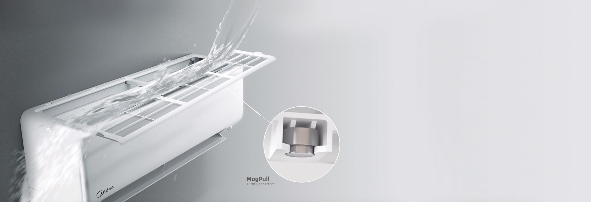 6 conectori magnetici rotunzi, amplasati pe rama filtrului, fac usoara inlaturarea acestuia pentru igienizare. Apoi, cu un simplu click, ai si terminat remontarea filtrului curat.