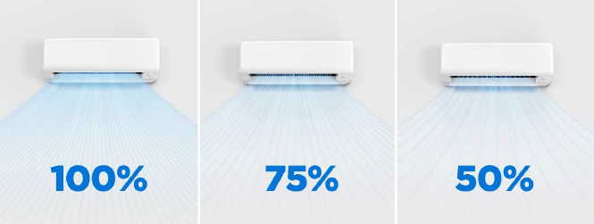 Functia "Gear" - MIDEA Inverter permite alegerea unui nivel de putere mai scazut, economisind astfel energie cand este suficient de racoare. Sunt posibile trei optiuni pentru consumul de energie - 50%, 75% si 100%.