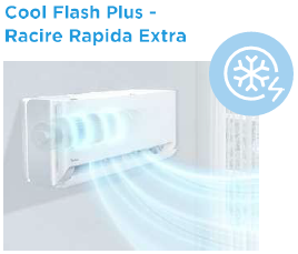 Tehnologia Midea Cool Flash Plus poate aduce o răcire instantanee în casa ta. Prin eliberarea unui volum generos de aer și un flux amplu de aer, temperatura întregii camere poate fi redusă cu 6.3 grade Celsius în doar 10 minute.