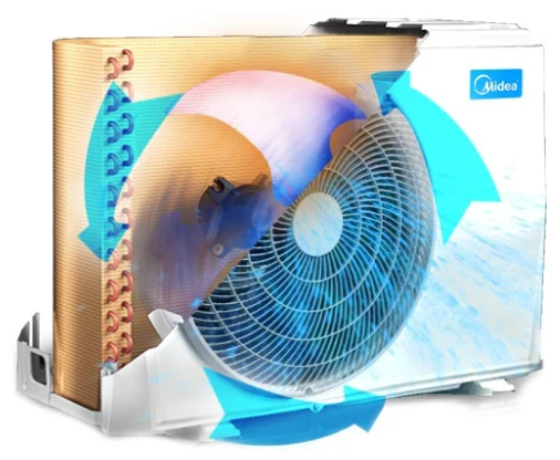 Pe langa paletele ventilatorului cu design special, motorul unitatii exterioare are capacitatea de a se roti in sens invers, pentru a se debarasa de nisipul si praful din exterior, asigurand curatenia aparatului si functionarea corespunzatoare, indiferent de conditiile de mediu.