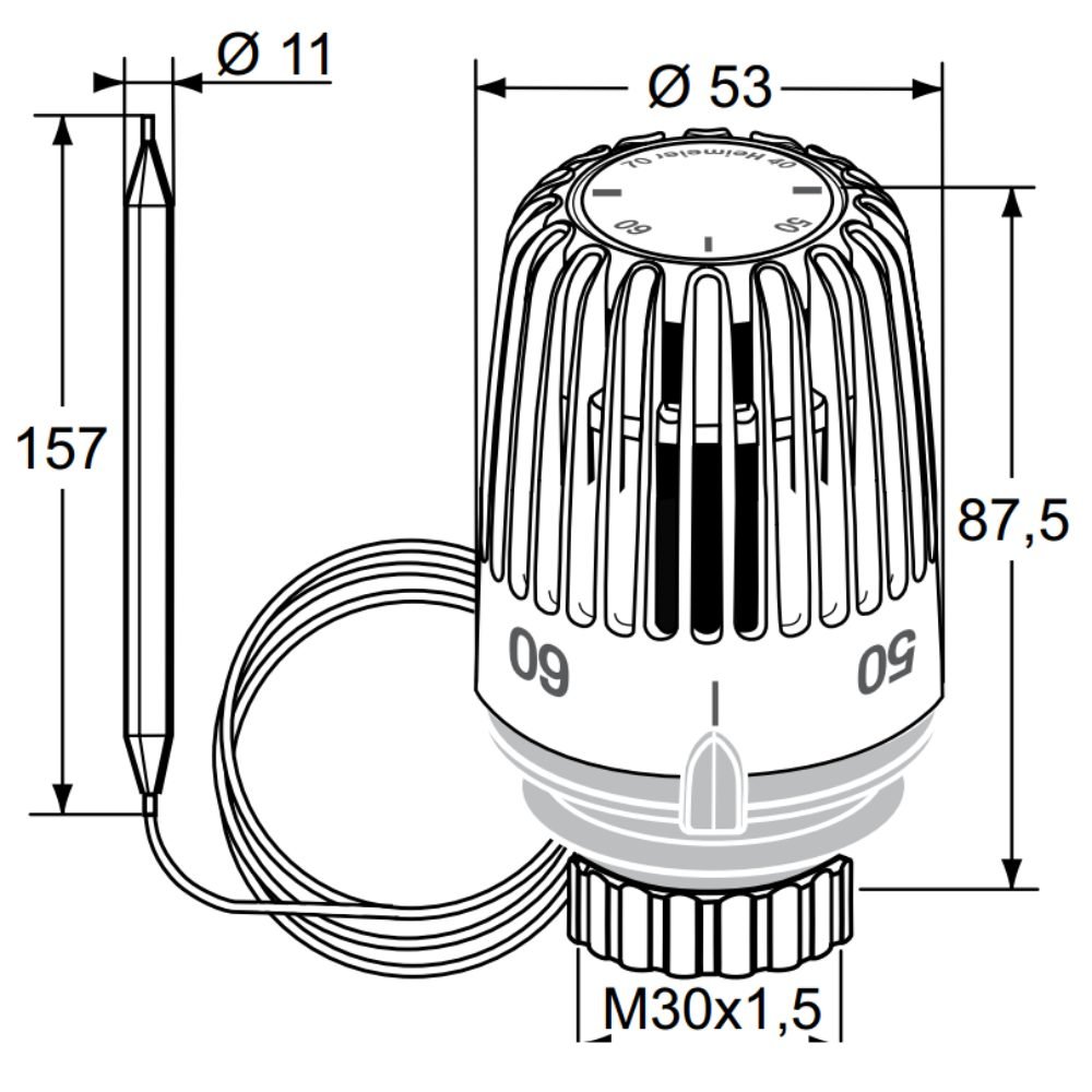 Capul termostatat Heimeier K 6602-00.500 este destinat reglării temperaturii în instalațiile de încălzire, fiind compatibil cu robinete termostatice și vane cu trei căi. Echipat cu senzor de contact și tub capilar de 2 metri, acesta permite controlul eficient al temperaturii în intervalul 40–70°C. Senzorul cu lichid asigură un răspuns rapid la variațiile de temperatură, contribuind la menținerea unui nivel constant de confort termic. Dispozitivul poate fi utilizat atât ca senzor de contact, cât și împreună cu o teacă de imersie, pentru o funcționare optimă.