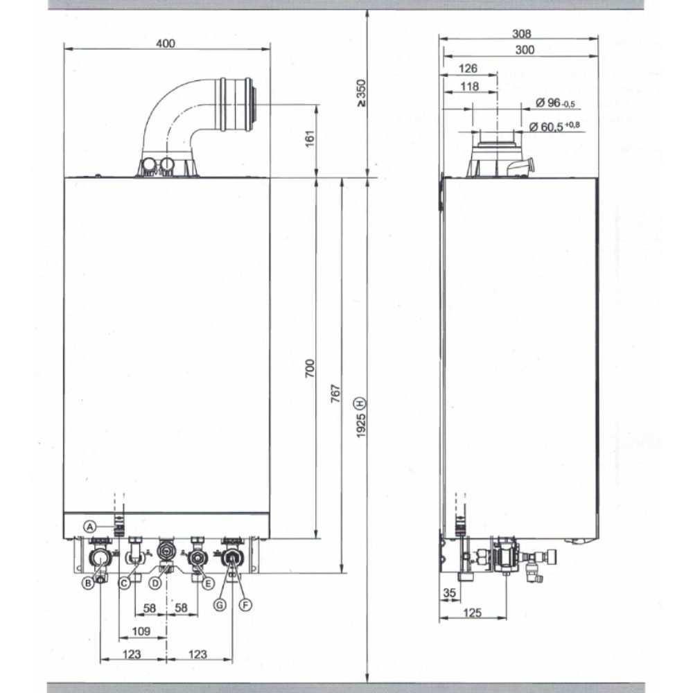 Modelul Vitodens 050-W este conceput sa incapa in spatii mici si nu necesita spatii libere laterale pentru service, toate conexiunile importante sunt usor accesibile in fata.