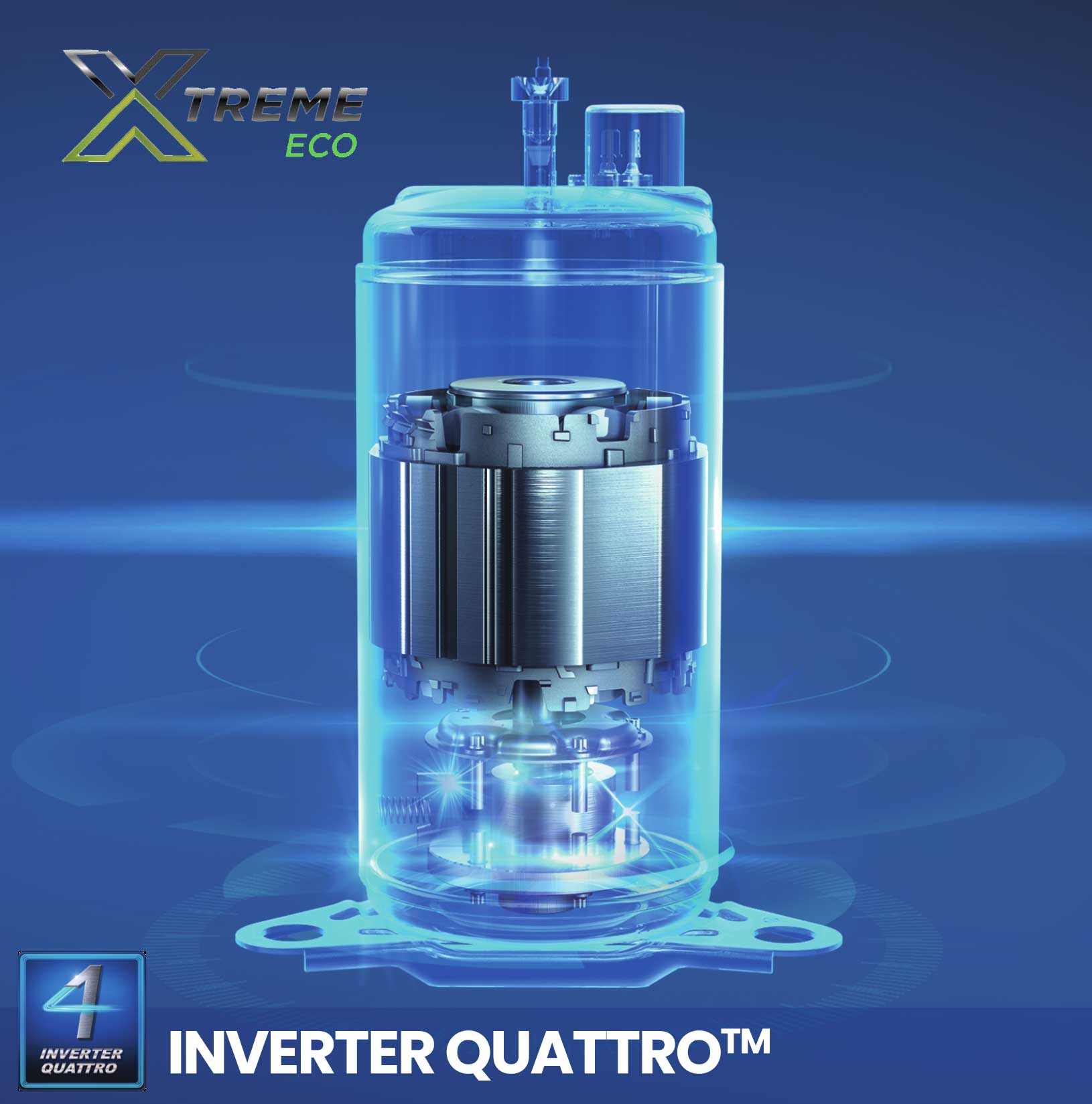 Inverter Quattro tehnologie exclusiva Midea transforma compresorul inverter GMCC in unul dintre cele mai performante compresoare de aer conditionat din lume. Compresoarele aparatelor Midea sunt puternice, eficiente, constante si ating viteze ridicate, 4 avantaje prezente permanent Cu ajutorul acestei tehnologii XtremeECO functioneaza la capacitate optima cu un consum mult mai redus de energie, pastrand temperatura constanta.