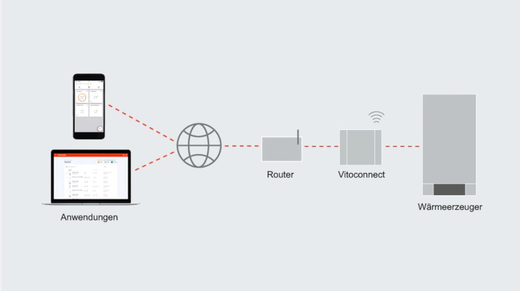 ViCare accesează sistemul de automatizare al centralei termice prin intermediul modului Vitoconnect 100 conectat la reteaua WiFi a locuintei.Dupa instalare se selecteaza un operator de service agreat. Acesta va fi notificat prin Vitoguide ca a preluat in evidenta instalatia dumneavoastra. Cerinte